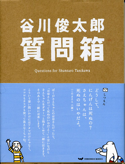 谷川俊太郎/質問箱 谷川俊太郎さんの「質問箱」を読みました!本の表紙本の内容は、「ほぼ日刊イトイ新聞」でやっていた「谷川俊太郎質問箱」のまとめ本です。(普段、アマゾンの作品内容から説明文をコピペしてるんですが、今回は無かったので・・・)正直な所、この本は、「読んでみて!」としか、言いようが無いです。何処が良いとかではなく、一つ一つの些細な質問や大きな質問まで。そんな事考えた事無い!って言いたくなるようなどうでも良い質問も、私もよく考えるよ!ってなる質問まで幅広く、一般の方から寄せられたものに谷川さんが答えてます。私は、言葉が優しいなって感じたり、ホッと心が和らいだり、笑ってしまったりしました。なんというか、この本は、沢山の人に読んで欲しいなって思いました。良いものだから読むんじゃなくて、フッと思い出した時に心が落ち着いたりできる本なんじゃないかなっと。普段は忘れてるんだけど「あっ」て思い出すような。本にするにあたって、有名なアーティストや小説家からも質問をもらったのにも、答えてました。ハルカリの二人とか、スチャダラパーとか、重松清さん、ガチャピンとムックにまで。読んでみてください、イラストもスゴく可愛いです♪あと、水色の帯を取ってみてください。表紙の紙も取ってみてください。可愛い絵が覗くよ♪ PR