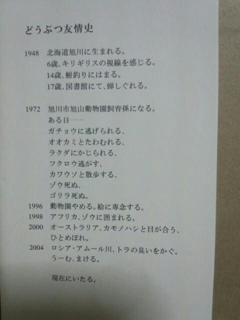 あべ弘士/どうぶつ友情辞典 あべ弘士さんの「どうぶつ友情辞典」を、読みました。単行本の表紙。内容は、旭山動物園で25年間飼育係だった絵本作家・あべ弘士。だからこそ生まれた「どうぶつ交友録」にして「どうぶつ辞典」、しみじみと「ひと」が好きになる辞典です。つか、プロフィールが良いです。 あと、感想というより、この文章ね。「長いこと動物園や自然の中で動物たちと付き合ってきましたが、いま、つくづくおもうに、彼らは実に素敵です」これ!!この文章ね!!もうね、いいから、読むわ!!ってなった。つか、これ、冒頭の一行目なんだけど、一行目からガツンと来たよね。つか、ニマーンって、顔が緩んだ!もうね、いいから、動物好きな人は、読んだ方が良いよ。動物好きじゃなくても読んだ方が良いよ!それだけ!色んな動物の項目があるから、好きな動物の部分だけ読むも良し!だよっ! PR
