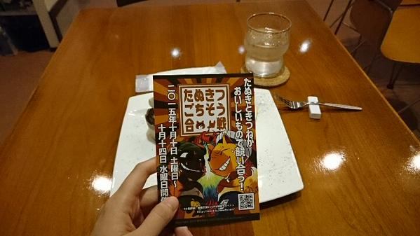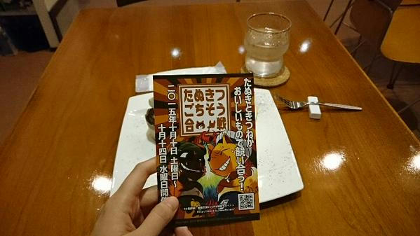 ギャラリーカフェ テオ 「ギャラリーカフェ テオ」さんに、行ってきました。ツイッターで、今展示中の「たぬきつごちそう合戦」の、特別メニューを見て、可愛い!絶対食べる!!っと、シアターカフェさんの上映会後、ダッシュで行ってきました。実は、前々から、ギャラリーカフェテオさんには、行こうと思っていたのですが、なかなか行けず・・・私の出不精もあってでしょうか。なので、食い意地を原動力に、向かいました!閉店三十分前に、ぜぇぜぇ言いながら到着。ジャバジャバと片付けをしている音のする場所へ、「まだ大丈夫ですか?!」と、声をかけたら、にこやかにOKしていただけました!わーい、先にたぬきつ特別メニューを注文をし、展示を見に、二階へ。「箱の中のユーフォリア」さん主催の、たぬきつごちそう合戦。「たぬき」と「きつね」がおいしいもので競い合う!って、動物×食のコラボ。たぬき派と、キツネ派と別れて、美味しい物のイラスト。タヌキもキツネも、「オイシイよ」っと、誘ってくるようなイラスト満載でした^^!そして、動物×食のコラボは、特別メニューだあぁああぁ!タヌキとキツネが美味しく変身☆ どろんっ! ごちそうさまでした。美味しくいただきました◎そして、ギャラリーカフェ テオさんには、本棚が設置されてて、色んなジャンルの本が読めるのですが、ソレがもう、宝の山でして。思わぬ所でゾンビトークに花を咲かせてりもしつつ、気になる本がいくつもありまして^///^!読書好きの友人を是非とも連れて行きたいと思いました。----10月17日に、大須(名古屋)にあるシアターカフェさんで本の交換会を企画しています。本好きの方、よろしくお願いします^^!明細はコチラです。 PR
