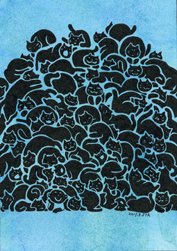 クリエーターズマーケットお疲れ様でした! クリエーターズマーケット、お疲れさまでした。足を運んで下さった方、興味を持ってくれて話しかけて下さった方、作品を連れて帰って下さった方、いや、クリマに関わった皆さん、ありがとうございました!毎度クリマに参加して思うのは、新しい発見があることです。次はこうしてみようって、改善提案も反省点も見えてくるんですが、一番大きいのは、作品を見て下さった方の反応でしょうかね。前回の時には聞けなかったリアクションなど、どの言葉も私の作品に対する言葉たちなんだなって。私が、私の作品を描いて理解している以上の事を、見ている人が感じ取ってくれるんだなっと、思いました。前回、原画が売れたときは、ねこもりのイラストでした。 その時が、正直、原画が売れたのが初めてだったのですが、私は、「コレは、猫の絵だから猫好きさんが反応してくれる言わば、売れる絵」を、自然と描いてしまったのだなっと思いました。私は猫が好きだし、ねこを積上げて囲まれたいって気持ちは前々からありました。猫を積上げるイラストを描いたのは、2011年。初めての猫盛りはコチラ。 ちなみに、タイトルは「猫埋め」と、なっていました。シリーズで描く事で、「ねこもり」と、表記し始めました。んで、11月に母校で作品展に参加した際に、提出したイラストにも「ねこもり」のイラストを持って行った時に、当時担任だった先生に「こーゆー絵は売れるんじゃない?」と、言われました。実際、ミニイラストを今回描く時に、前にねこもりのミニイラストを持って行った時に、買いたかったと声を掛けて下さった方が何人かいらっしゃったので、今回はアニマルクリエーターのイベントに参加した事もあり、ねこもりイラスト沢山持って行きました。10枚ぐらいはあったかな。だけど、また「前にねこ積上げたイラスト描いてましたよね?今日は小さなイラストないんですか?売れちゃった?」と、声もかけていただきました。覚えて下さったのが嬉しい反面、楽しいし、買ってくれる人が喜ぶからって、ソレばっかりを描くのも違うのかなっと思ってて、じゃぁ、最近お気に入りの「家」を描こうっと、この頃好きな「魚」も入れて、好きな動物も入れて、シリーズで書いていこうと思って、この頃ずっと家イラストを描いていまして。 「建物と魚、それから動物シリーズ」のイラスト、正直、私は、好かれないイラストなのかなって、描きながら思ってました。自分は、好きなものの詰め込んだもので楽しくて楽しくて仕方が無いけど、このイラストを好きと言ってもらえる事はあるのかしら・・・?っと、半信半疑でしたが、今回、杞憂に終わりました!!ちゃんと、見てもらえました!好いてもらえました!!売れる絵が描きたいわけではない、いや、売れた方が絵も誰かに見てもらえる事で輝き続けるので嬉しいです。だって、描くだけじゃ、私の家出は飾りきらないので結局は、片付けられてしまわれてしまう。でも、気に入って下さった方が居れば、飾ってもらえる。わー、スゴく嬉しい。見てもらえる事で、私の絵が、相手の生活に溶けるんだって思うとスゴく幸せ。あと、個人的に模様バリバリ系のイラストが売れた事は今回かなり大きい。 簡単に言えば、ゴチャゴチャして目が痛い系ですかね。私はこの絵がスゴく好き。まぁ、スゴく時間がかかるんですが。今回の事で、私が、あーだこーだ考えずとも感じてくれる人は居るんだなっと、見てもらえるキッカケが本当に大事なんだなって、しみじみ思いました。なんだか、長くなって来たので、キッカケとして、今回やったライブペイントのまとめは明日、日記に書きます。あと、看板や、展示方法についても、色々書いておきたいです。結局の所まとまってない日記ですが^^;いつものことです。 PR