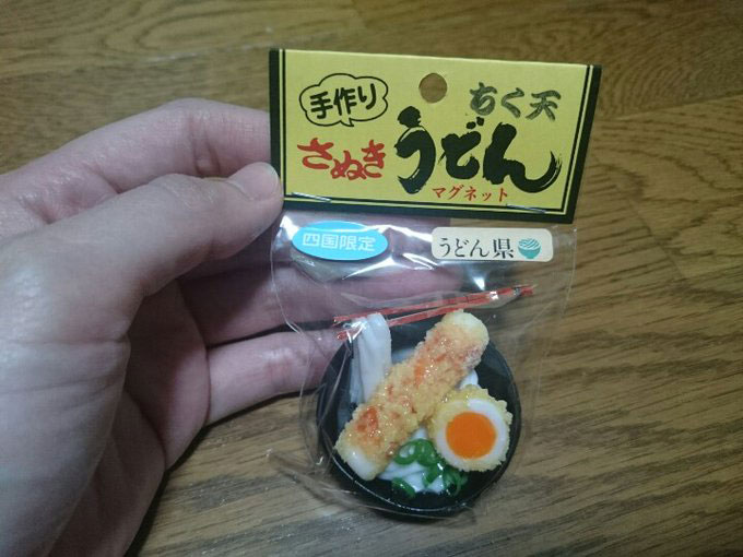 うどん好き うどん好きを公言してるんですが、先日職場の方が、香川に出張に行くと言うことで、「うどん買って来てくださいよぉ〜〜」と、しつこく言ったら、マグネット貰いました! ちくわ天と半熟卵とは、ポイント高い・・・可愛い・・・っと、大満足!!!可愛いマグネットだ、職場で使います◎そして、・・・・コレは・・・・。ヤバい感じしかしませんwww味はどうなんだ・・・。だし入り・・・。 PR