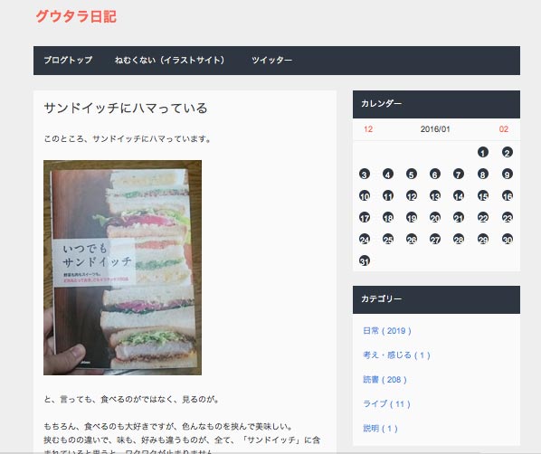 サンドイッチにハマっている このところ、サンドイッチにハマっています。と、言っても、食べるのがではなく、見るのが。もちろん、食べるのも大好きですが、色んなものを挟んで美味しい。挟むものの違いで、味も、好みも違うものが、全て、「サンドイッチ」に含まれていると思うと、ワクワクが止まりません。あと、片手で”ヒョイっ”と持てるパン。お気軽で簡単なくせに、色んなものが挟まれていて、挟まれてるものによっても見栄えが違うってのが、素晴らしい!!デザイン(?)、として、サンドイッチを、かなり評価しています。見るだけでもあんなにもパターンの違うものがあって、色味も、カタチも、パンの形によっても、挟むものが一緒だとしても、違って見える。何これ、最高じゃないですか><!!!スイーツなんかは、デザイン的にも、シンプルなものから、デコレーションの施されたものを幅広いですが、サンドイッチも同じなんじゃないでしょうか?(※ 個人的な意見です)具材が見えるってのも良いですね。お洒落なのも、素朴なのも、何でもござれ。とてもキレイだし、ついつい、サンドイッチの本を買ってしまいました。写真集とかで、ないかと思ったけど、料理本が、一番良いです。中に入ってる具材が載ってるのも想像しやすくて、良いのかしら・・・?あとは、料理本でも、写真の取り方は、好みが有るので、色々と本屋さんを巡っては、チラチラ見てましたが、これで、サンドイッチの本が二冊目に入りました。題材として、本を買うのは久しぶりだったので、それだけハマっているってことです。しかし、サンドイッチは、私のイラストで描けるかしら・・・!?悩みどころです。